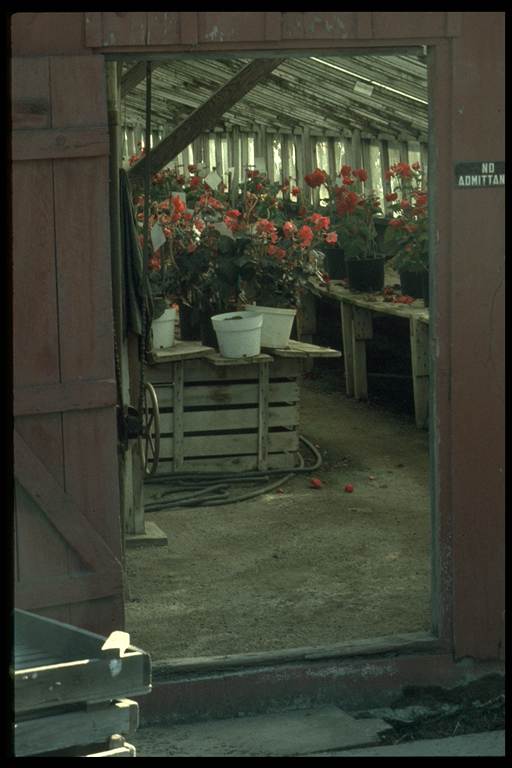Although the greenhouses were old, they were scrupulously clean. The redwood benches in the propagation houses were painted every year, before sowing, with a 50–50 mix of diesel and formaldehyde. They had a kind of oily green color from so many years of this treatment they looked like particularly ugly ebony. The flats were steamed in a big old pressure cooker that was bought when the canneries from Cannery Row closed in Monterey.